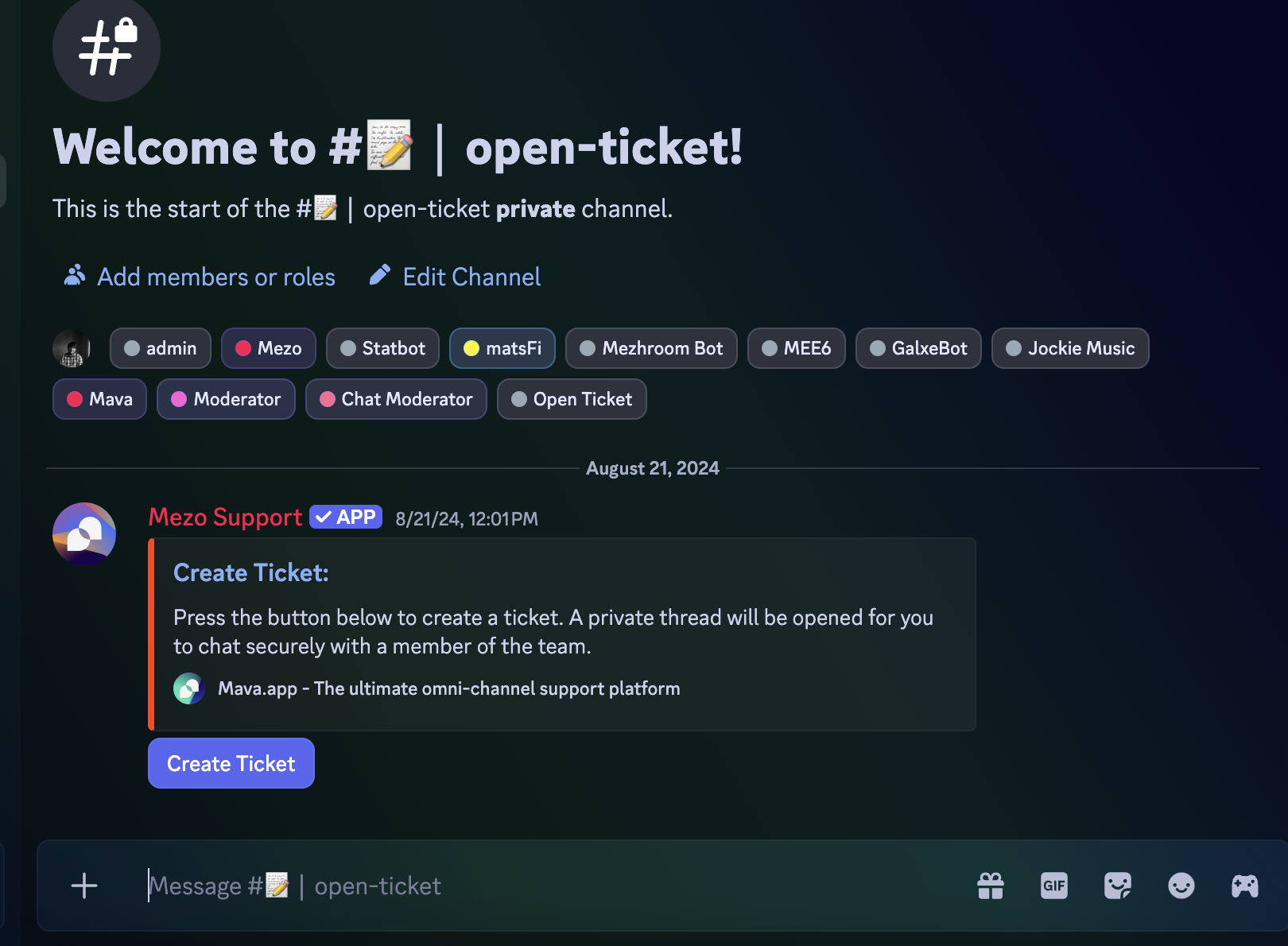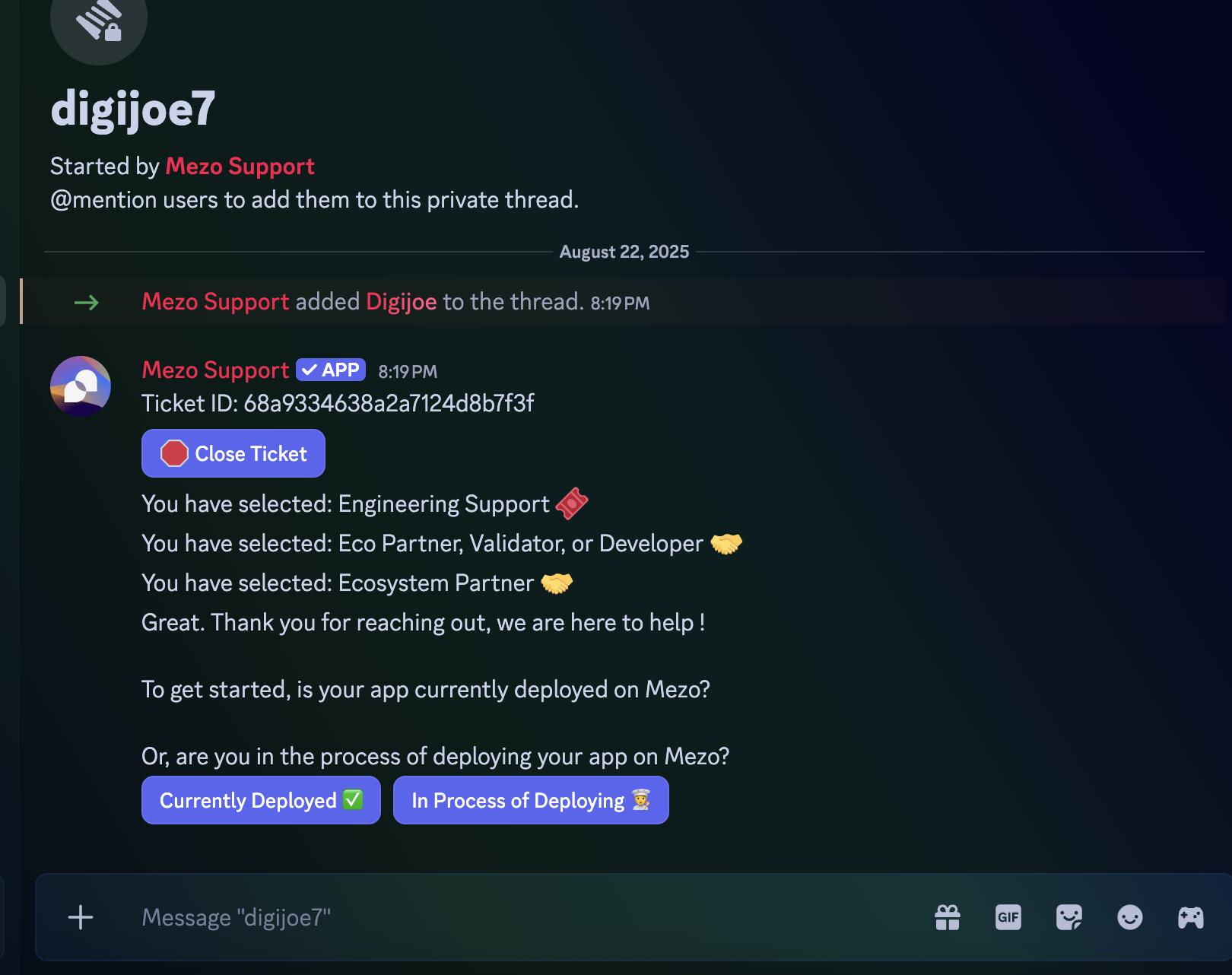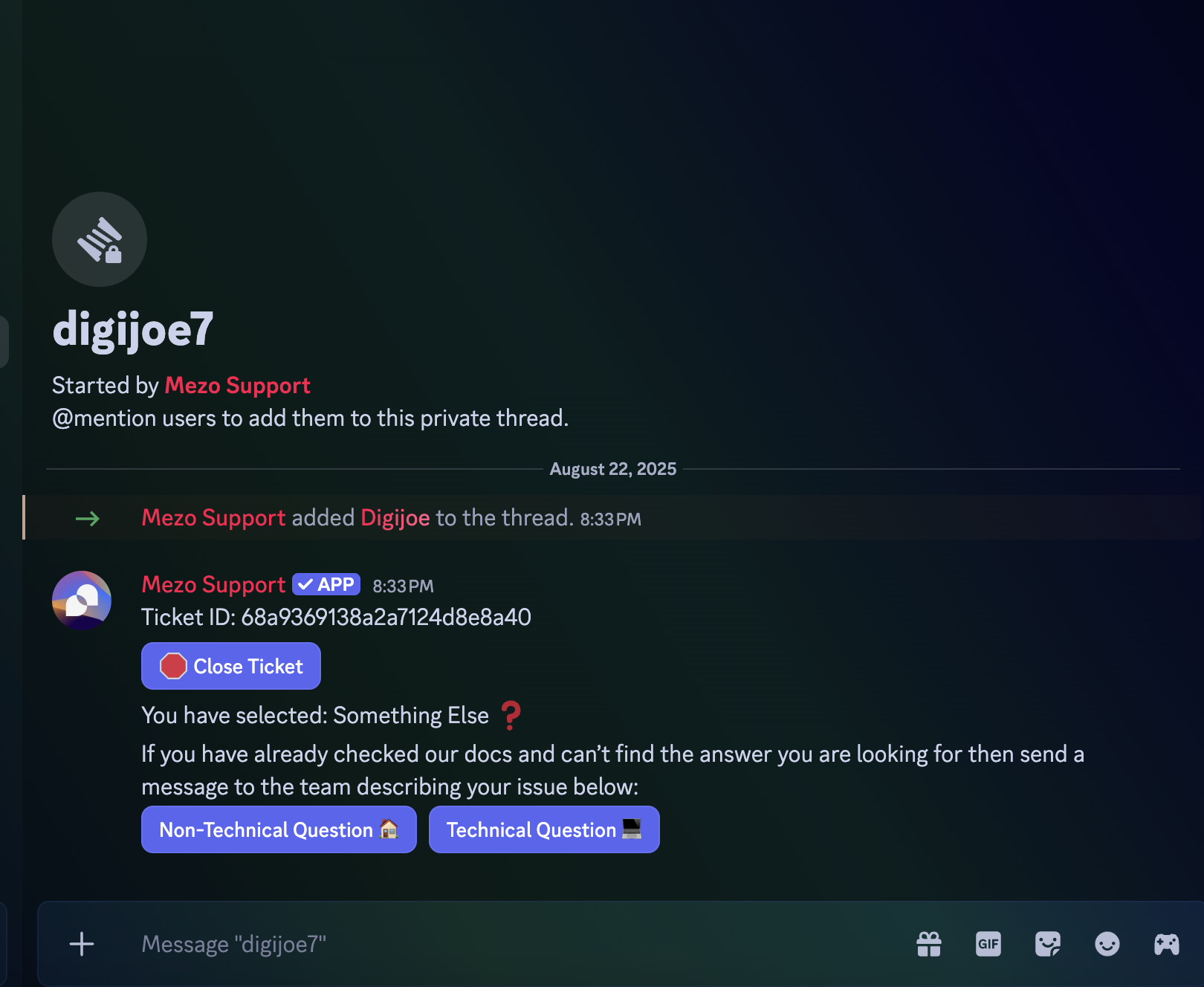 Section titled “Step 1”Tag a moderator, digijoe, or lowpolyduck in general chat asking for the “open-ticket” role to unlock the support ticket channel.